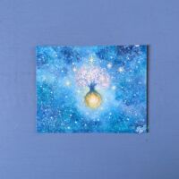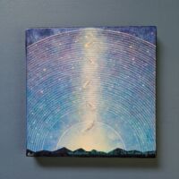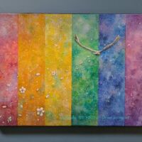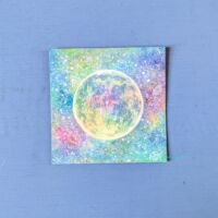 こちらは最近面白いと思っている、モチーフをちょっと盛り上げてジェルメディウムで透明とキラキラさせる作品にしました。