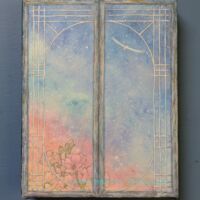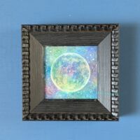 こちらは最近面白いと思っている、モチーフをちょっと盛り上げてジェルメディウムで透明とキラキラさせる作品にしました。